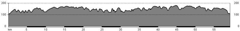 Aan km 35 een eerste dipje, aan km 43 een schuiver, maar de benen bleven redelijk. De laatste 20km zaten er wel nog enkele serieuse kuitenbijters in , en zag ik mijn tempo steeds verder zakken. De laatste 5km waren gelukkig vrij vlak, en in ca 3uur kwam ik over de aankomst.